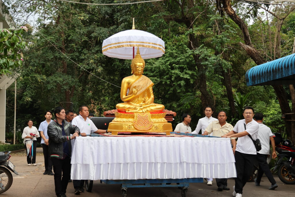 ภายหลังเสร็จสิ้นพิธี ได้มีการตั้งริ้วขบวนแห่อัญเชิญองค์“พระพุทธประทานพร” อย่างยิ่งใหญ่ เคลื่อนขบวนจากที่ประดิษฐานเดิมไปยังศาลารวมใจธรรมเกื้อกูล เมื่อขบวนเคลื่อนถึงศาลาหลังใหม่ ในเวลา 08.09 น. ได้ประกอบพิธีอัญเชิญองค์พระพุทธปฏิมาขึ้นประดิษฐานบนแท่นบูชาอย่างเป็นทางการ จากนั้น ประธานในพิธีได้จุดธูปเทียนถวายบูชาพระรัตนตรัยและเครื่องสักการะ พร้อมด้วยคณะผู้บริหาร บุคลากร นักศึกษา และผู้เข้าร่วมพิธี ร่วมกันเจริญพุทธมนต์ เพื่อความเป็นสิริสวัสดิพิพัฒนมงคลแก่คณะพยาบาลศาสตร์และมหาวิทยาลัยขอนแก่น สร้างขวัญและกำลังใจให้แก่คณาจารย์ บุคลากร และนักศึกษา เป็นที่ยึดเหนี่ยวจิตใจในการประกอบคุณงามความดีและปฏิบัติภารกิจเพื่อส่วนรวมต่อไป