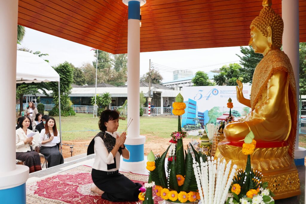 คณะพยาบาลศาสตร์ มข. ประกอบพิธีมหาพุทธาภิเษก อัญเชิญ “พระพุทธประทานพร” ประดิษฐาน ณ ศาลารวมใจธรรมเกื้อกูล เสริมสิริมงคลแก่บุคลากรและนักศึกษา