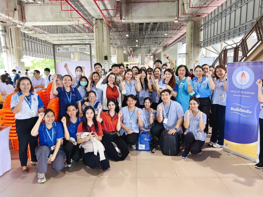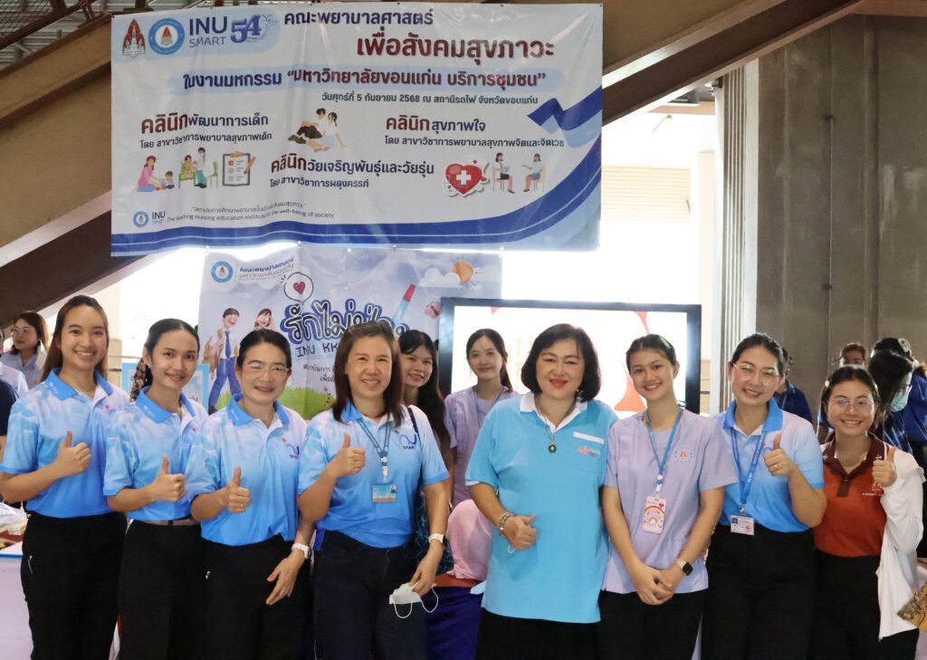 วันที่ 5 กันยายน 2568 คณะพยาบาลศาสตร์ มหาวิทยาลัยขอนแก่น นำโดย รศ.ดร.อัมพรพรรณ ธีรานุตร คณบดี พร้อมด้วยคณะผู้บริหาร คณาจารย์ บุคลากร และนักศึกษา เข้าร่วมกิจกรรม “มหกรรมมหาวิทยาลัยขอนแก่น บริหารชุมชน Societal Contribution” ณ สถานีรถไฟจังหวัดขอนแก่น