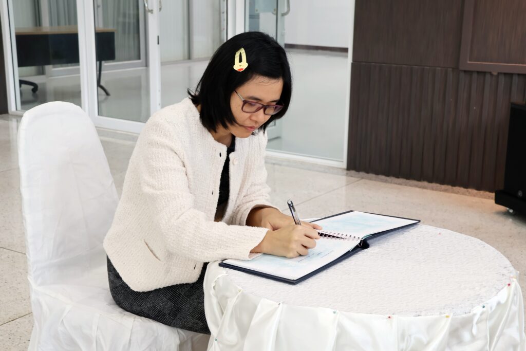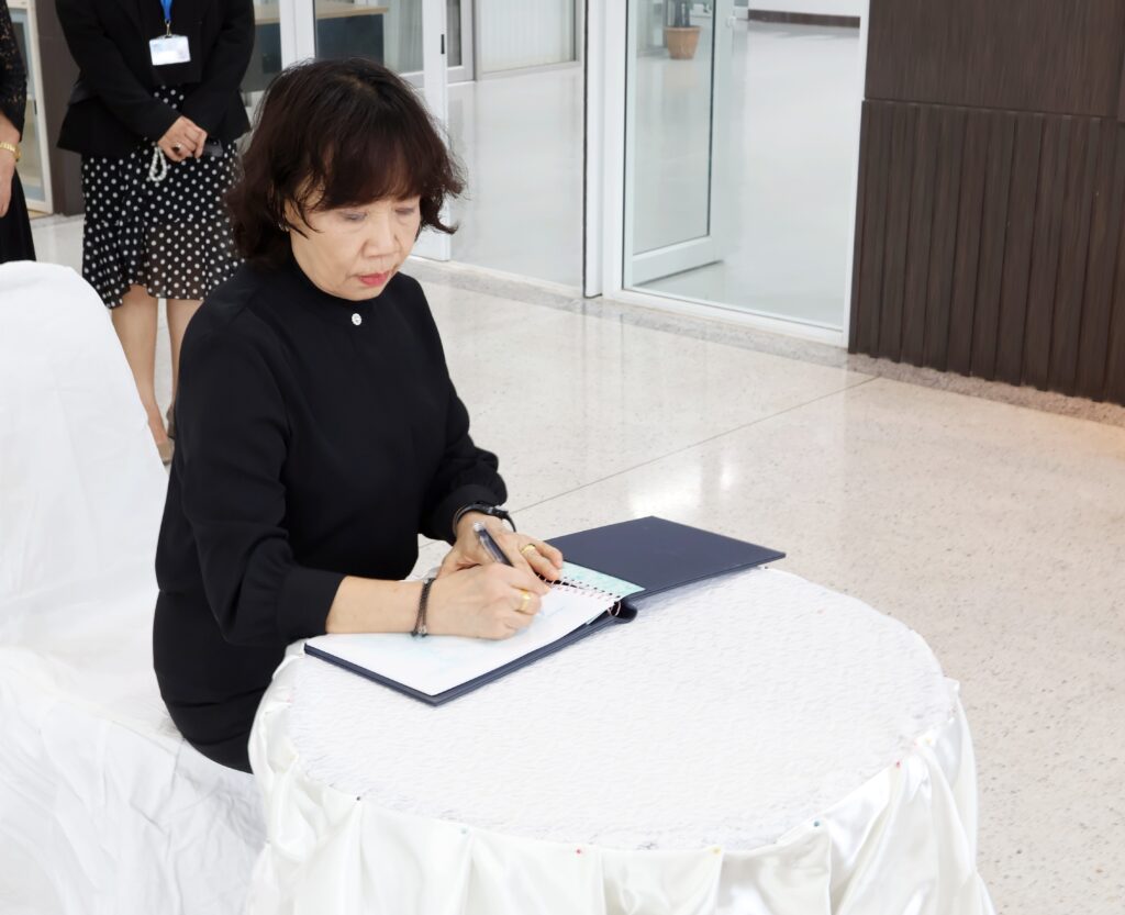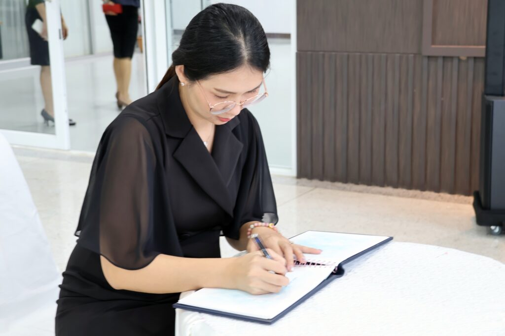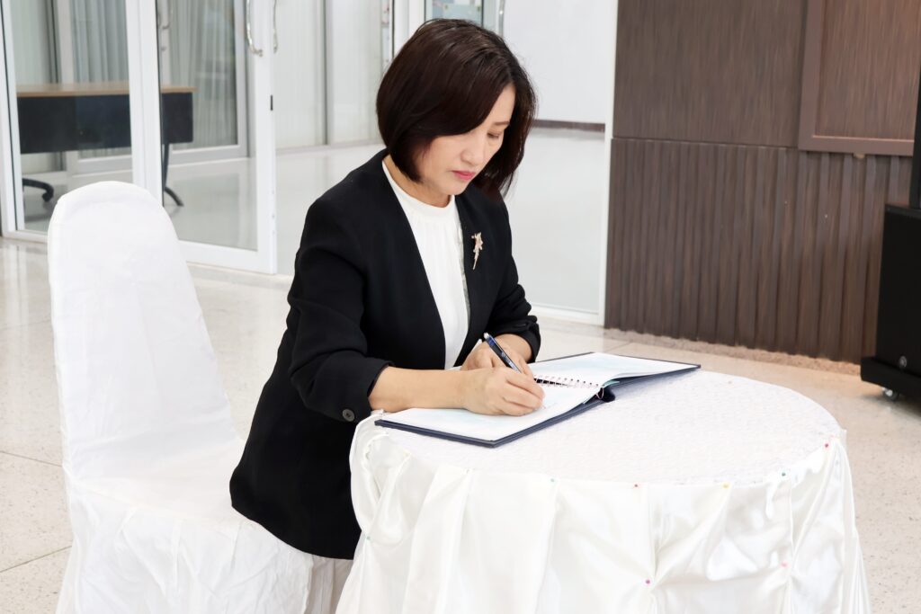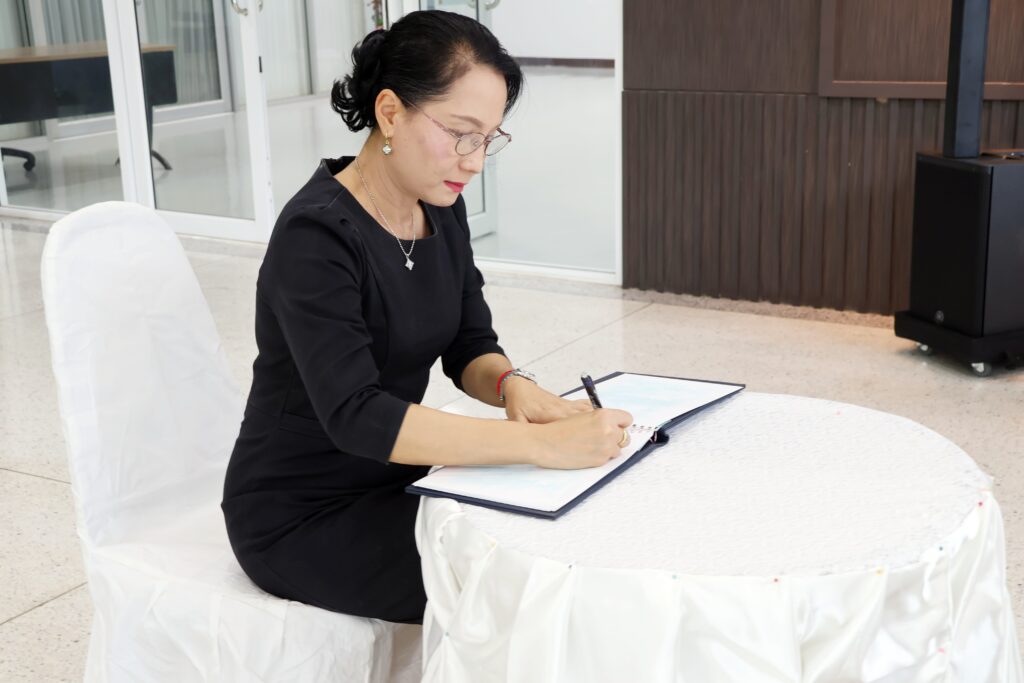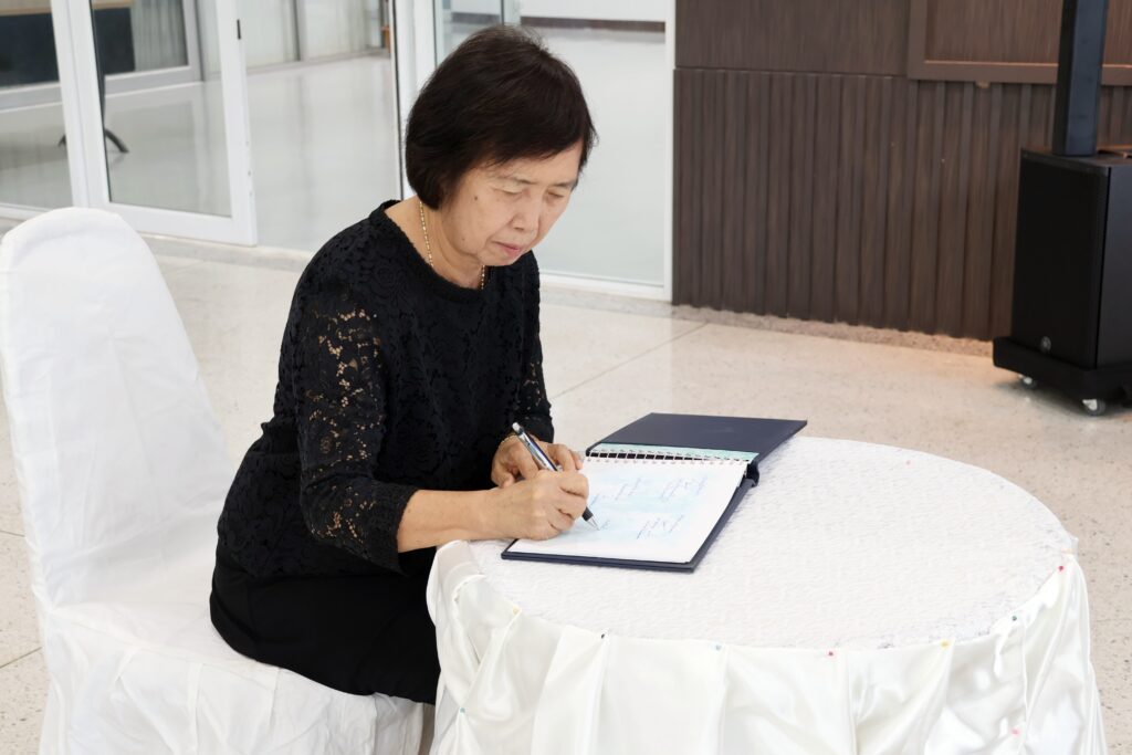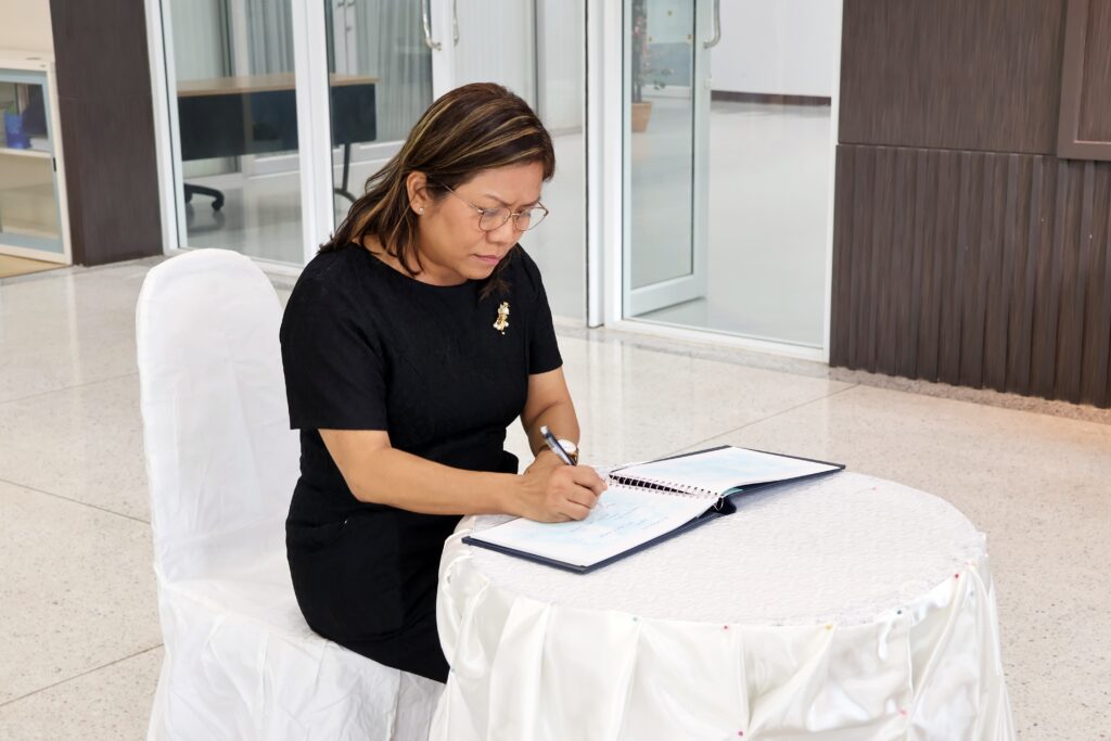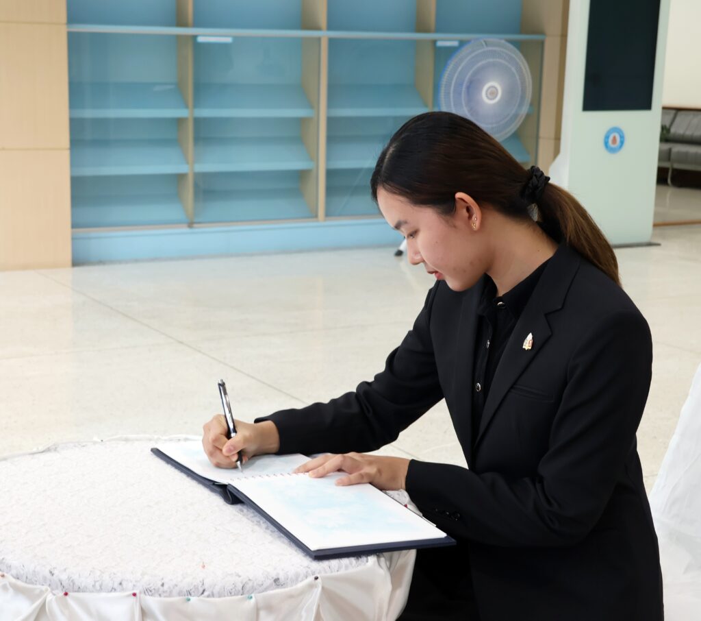 ซึ่งในการนี้คณะฯ ได้จัดโต๊ะสำหรับบุคลากรที่ไม่ได้เข้าร่วมพิธีลงนามถวายความอาลัยฯ ในวันเวลาและสถานที่ดังกล่าว