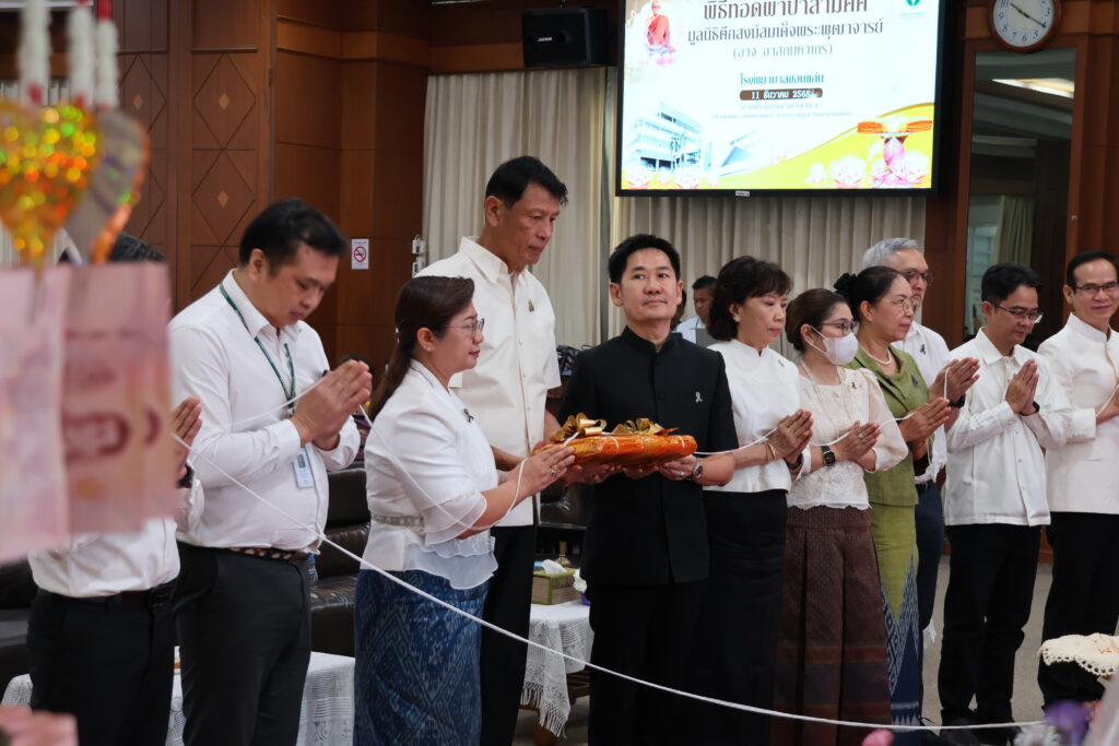 วันที่ 11 ธันวาคม 2568 คณะพยาบาลศาสตร์ มหาวิทยาลัยขอนแก่น นำโดย รองศาสตราจารย์ ดร.อัมพรพรรณ ธีรานุตร คณบดีคณะพยาบาลศาสตร์ พร้อมด้วย มูลนิธิสายหยุดนิยมวิภาต ผู้บริหาร คณาจารย์ บุคลากร และนักศึกษา ร่วมพิธีทอดผ้าป่าสามัคคีเพื่อมอบเงินสนับสนุนการดำเนินงานของ โรงพยาบาลขอนแก่น ณ โรงพยาบาลขอนแก่น จังหวัดขอนแก่น ซึ่งเป็นคู่ความร่วมมือด้านการผลิตบัณฑิตและเป็นแหล่งฝึกปฏิบัติสำคัญของนักศึกษาคณะพยาบาลศาสตร์