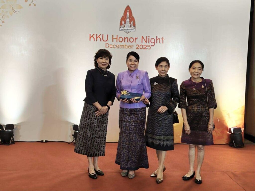 เมื่อวันที่ 18 ธันวาคม 2568 คณะพยาบาลศาสตร์ มหาวิทยาลัยขอนแก่น โดย รองศาสตราจารย์ ดร.อัมพรพรรณ ธีรานุตร คณบดีคณะพยาบาลศาสตร์ เข้าร่วมงาน KKU Honor Night 2025 งานแสดงความยินดีแด่ผู้ได้รับพระราชทานปริญญาดุษฎีบัณฑิตกิตติมศักดิ์ และผู้ได้รับรางวัลอันทรงเกียรติของมหาวิทยาลัยขอนแก่น ได้แก่ รางวัลพระธาตุพนมทองคำ รางวัลศิษย์เก่าดีเด่น รางวัลศรีมอดิแดง รางวัลศรีกาลพฤกษ์ และรางวัลกาลพฤกษ์ทองคำ ประจำปี 2568