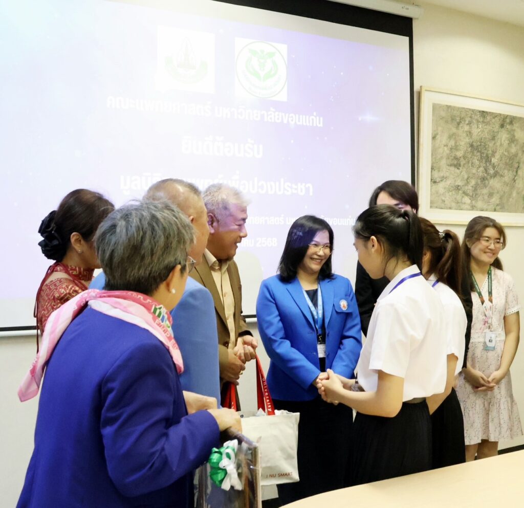 ในโอกาสนี้ รองศาสตราจารย์ ดร.นพ.ภัทรพงษ์ มกรเวส คณบดีคณะแพทยศาสตร์ มหาวิทยาลัยขอนแก่น ให้เกียรติกล่าวต้อนรับและแสดงความขอบคุณต่อมูลนิธิที่ให้การสนับสนุนทุนการศึกษาแก่นักศึกษาแพทย์และนักศึกษาพยาบาล ซึ่งนับเป็นการส่งเสริมโอกาสทางการศึกษาแก่เยาวชนในสายวิชาชีพทางสุขภาพอย่างต่อเนื่อง