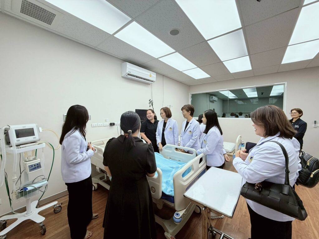 คณะศึกษาดูงานและเยี่ยมชมสิ่งสนับสนุนการจัดการเรียนการสอนห้องปฏิบัติการพยาบาล ห้อง Simulation lab ห้อง Special unit สาขาการพยาบาลเด็กและสาขาการผดุงครรภ์ รวมทั้งเทคโนโลยีโปรแกรมผู้ป่วยเสมือนจริง ทั้งนี้มีการแลกเปลี่ยนเรียนรู้การเตรียมความพร้อมวัสดุอุปกรณ์ในการฝึกให้มีประสิทธิภาพ การบริหารจัดการทรัพยากรการเรียนรู้ และรูปแบบการจัดประสบการณ์การฝึกปฏิบัติแก่นักศึกษา ซึ่งทั้งสองสถาบันได้แนวทางที่สามารถนำไปปรับใช้ให้เหมาะสมในการจัดการเรียนการสอนต่อไป
