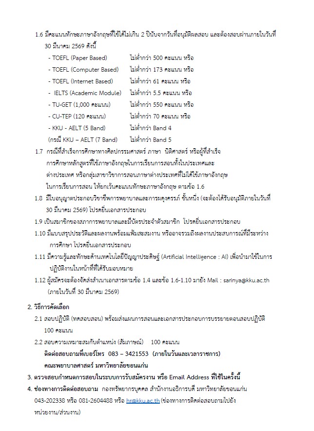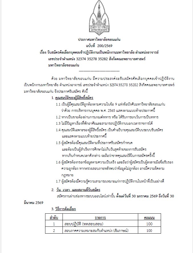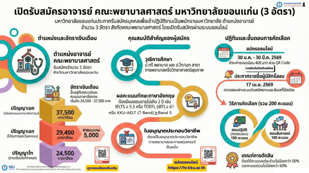 คณะพยาบาลศาสตร์ มหาวิทยาลัยขอนแก่น เปิดรับสมัครบุคคลเพื่อบรรจุเป็นพนักงานมหาวิทยาลัย ตำแหน่ง อาจารย์ จำนวน 3 อัตรา