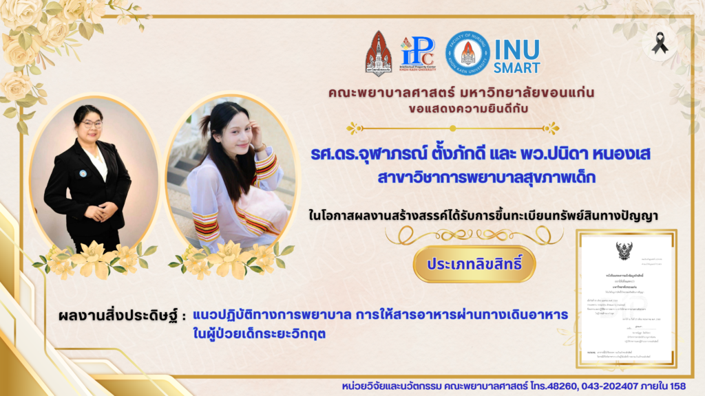 #SDG3#SDG4#SDG9#งานวิจัยและนวัตกรรม#ทรัพย์สินทางปัญญา#KKUNursing