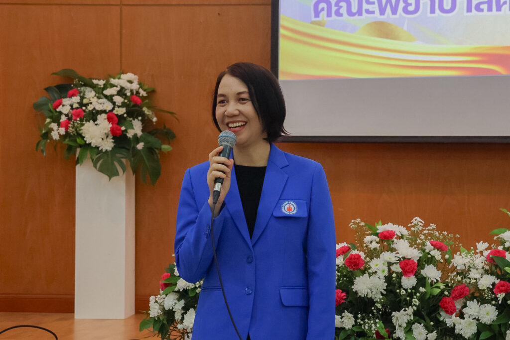 จากนั้น ผู้ช่วยศาสตราจารย์ ดร.สมจิตร เมืองพิล รองคณบดีฝ่ายการศึกษาและบริการวิชาการ บรรยาย“แนวทางการจัดการเรียนรู้หลักสูตรพยาบาลศาสตรบัณฑิต (ปรับปรุง พ.ศ. 2567)” เพื่อให้ผู้ปกครองเข้าใจโครงสร้างหลักสูตร การจัดการเรียนการสอน
