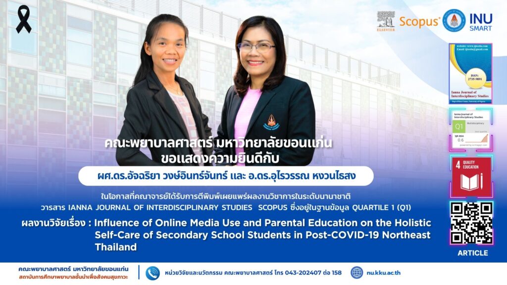 ✨ผลการวิจัยดังกล่าวมีส่วนสำคัญในการสร้างองค์ความรู้ด้านการส่งเสริมสุขภาพในกลุ่มเยาวชน โดยเฉพาะในบริบทสังคมยุคดิจิทัลที่สื่อออนไลน์มีบทบาทต่อวิถีชีวิตประจำวันของนักเรียน อีกทั้งยังสะท้อนถึงความสำคัญของปัจจัยด้านครอบครัว โดยเฉพาะระดับการศึกษาของผู้ปกครอง ซึ่งมีอิทธิพลต่อการปลูกฝังพฤติกรรมสุขภาพที่เหมาะสม ความสำเร็จในการตีพิมพ์ผลงานวิจัยในวารสารระดับนานาชาติครั้งนี้ นับเป็นอีกหนึ่งความภาคภูมิใจของคณะพยาบาลศาสตร์ มหาวิทยาลัยขอนแก่น ที่สะท้อนถึงศักยภาพของคณาจารย์ในการผลิตผลงานวิชาการที่มีคุณภาพ เป็นที่ยอมรับในระดับสากล และสามารถนำองค์ความรู้ไปประยุกต์ใช้เพื่อพัฒนาระบบสุขภาพและคุณภาพชีวิตของประชาชนได้อย่างเป็นรูปธรรม