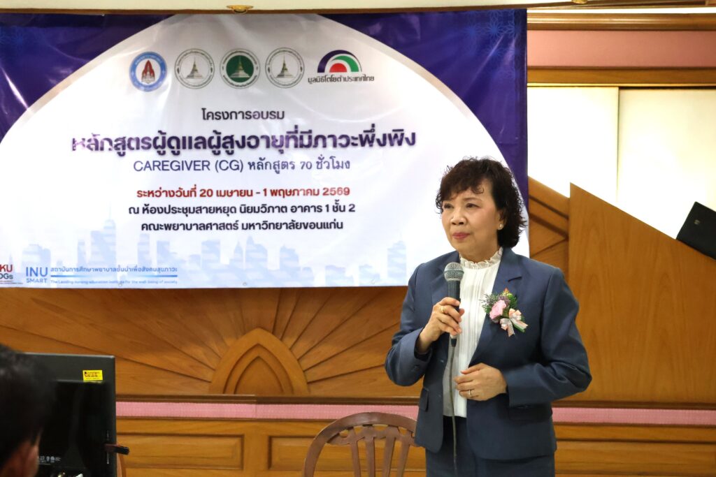เมื่อวันที่ 20 เมษายน 2569 ณ คณะพยาบาลศาสตร์ มหาวิทยาลัยขอนแก่น ได้มีพิธีเปิดโครงการอบรมหลักสูตรผู้ดูแลผู้สูงอายุที่มีภาวะพึ่งพิง (Caregiver: CG) โดยได้รับเกียรติจากท่านคณบดีคณะพยาบาลศาสตร์ รศ.ดร.อัมพรพรรณ ธีรานุตร เป็นประธานในพิธี