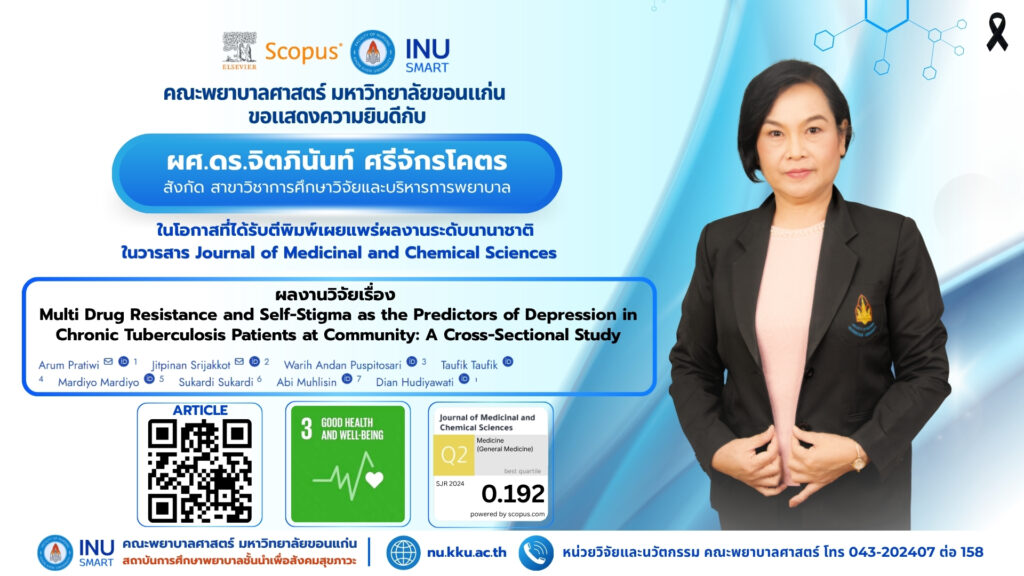 📌ภายใต้ผลงานวิจัยเรื่อง “Multi Drug Resistance and Self-Stigma as the Predictors of Depression in Chronic Tuberculosis Patients at Community: A Cross-Sectional Study