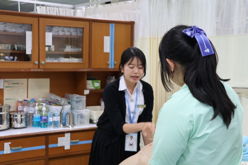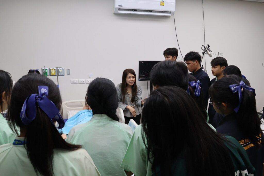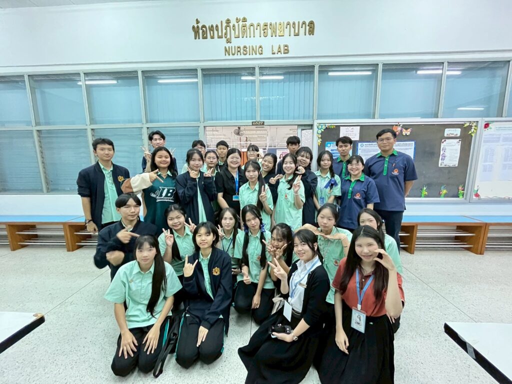 ต่อมา นักศึกษาพยาบาลชั้นปีที่ 3 ได้นำคณะผู้เข้าศึกษาดูงานเยี่ยมชมห้องปฏิบัติการทางการพยาบาล โดยมี ผู้ช่วยศาสตราจารย์ ดร.นิตยา พันธ์งาม รองคณบดีฝ่ายบริการวิชาการ และ ผู้ช่วยศาสตราจารย์ ดร.ประกายแก้ว ศิริพูล ผู้ช่วยคณบดีฝ่ายเทคโนโลยีทางการศึกษา ร่วมแนะนำและอธิบายการใช้งานอุปกรณ์และสื่อการเรียนการสอนภายในห้องปฏิบัติการทางการพยาบาล