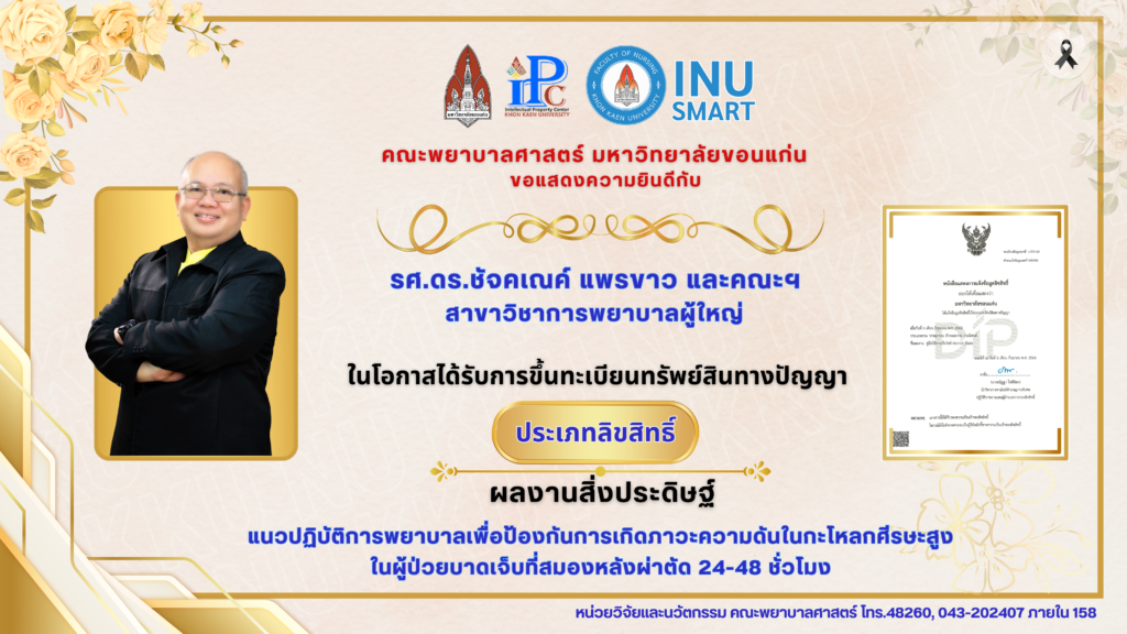 คณะพยาบาลศาสตร์ มหาวิทยาลัยขอนแก่น ขอแสดงความยินดีกับ รศ.ดร.ชัจคเณค์ แพรขาว และคณะฯ