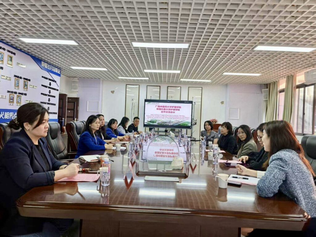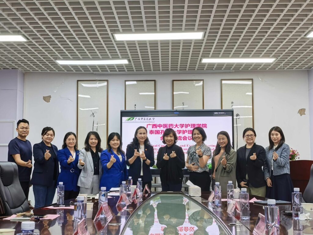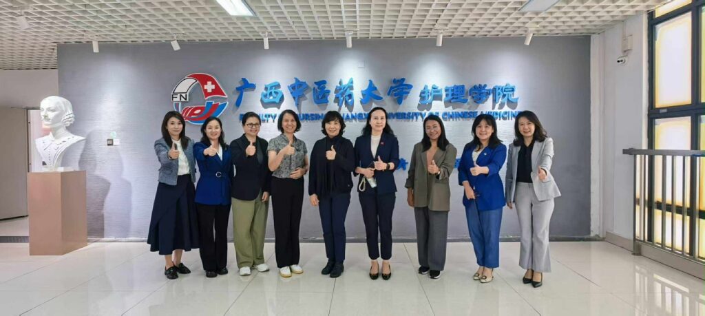 On 13 November 2025, executives and staff members from the Faculty of Nursing, Khon Kaen University, led by Assoc. Prof. Dr. Ampornpan Theeranut, Dean; Asst. Prof. Dr. Somjit Muangpin, Vice Dean for Academic Affairs; Asst. Prof. Dr. Wiphawadee Potisopha, Assistant Dean for Global Affairs; and Ms. Hathaichanok Leevichai, International Affairs Officer, participated in a Partnership & Exchange Meeting with the leadership of the Faculty of Nursing, Guangxi University of Chinese Medicine (GXUCM), including Prof. Han Yefen, Dean, and Prof. Chen Ling, Vice Dean, to discuss the enhancement and expansion of bilateral collaboration in nursing education.