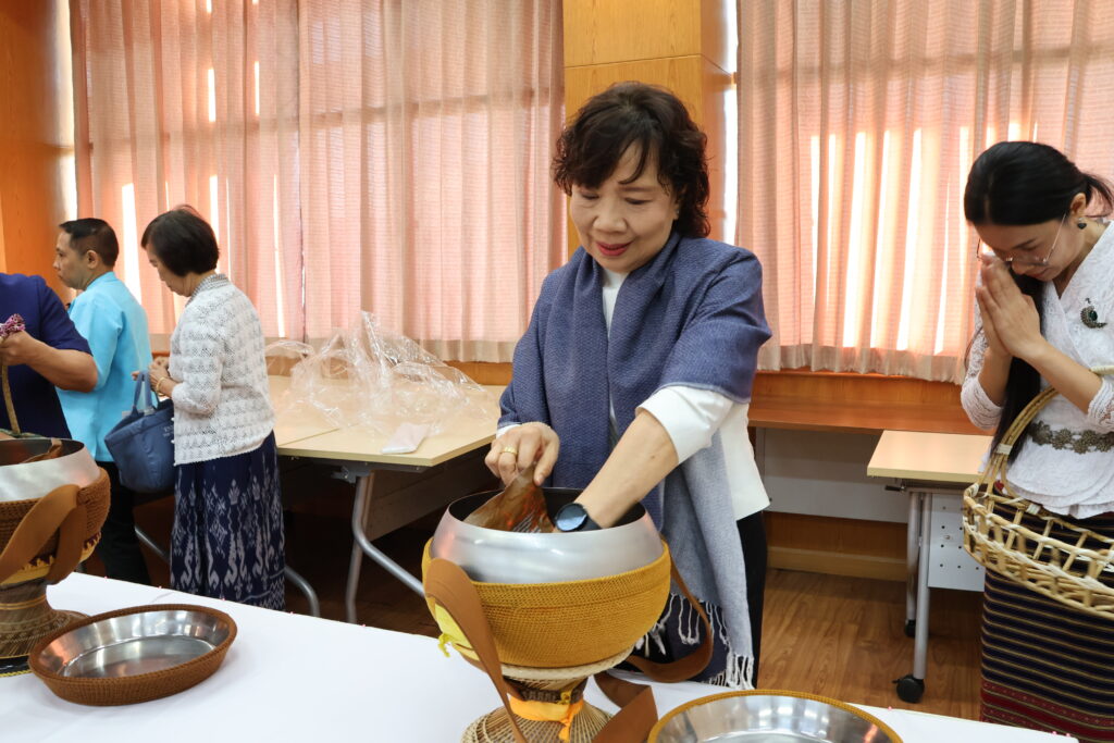 ภายในพิธีประกอบด้วยการทำบุญตักบาตรอาหารแห้งแด่พระสงฆ์ จำนวน 5 รูป การถวายภัตตาหาร และการรับประทานอาหารร่วมกัน กิจกรรมดังกล่าวนอกจากจะเป็นการสืบสานขนบธรรมเนียมประเพณีอันดีงามแล้ว ยังเป็นโอกาสอันดีในการเสริมสร้างความสามัคคี ความอบอุ่น และขวัญกำลังใจแก่คณาจารย์และบุคลากร เพื่อร่วมกันขับเคลื่อนภารกิจของคณะพยาบาลศาสตร์ มหาวิทยาลัยขอนแก่น ให้ก้าวหน้าอย่างมีประสิทธิภาพและยั่งยืนต่อไปในปี 2569