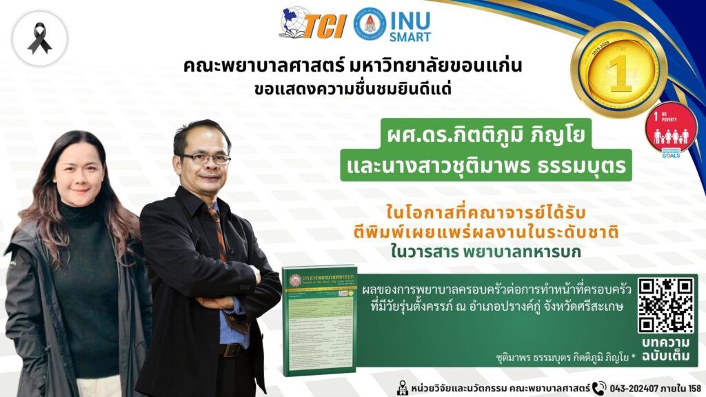 คณะพยาบาลศาสตร์ มหาวิทยาลัยขอนแก่น ขอชื่นชมในความมุ่งมั่น ทุ่มเท และความสำเร็จทางวิชาการในครั้งนี้ ซึ่งนับเป็นการสร้างชื่อเสียงให้แก่คณะฯ และสถาบัน ตลอดจนสอดคล้องกับเป้าหมายการพัฒนาที่ยั่งยืน (SDGs) โดยเฉพาะด้านการลดความยากจนและการส่งเสริมคุณภาพชีวิตของประชาชน